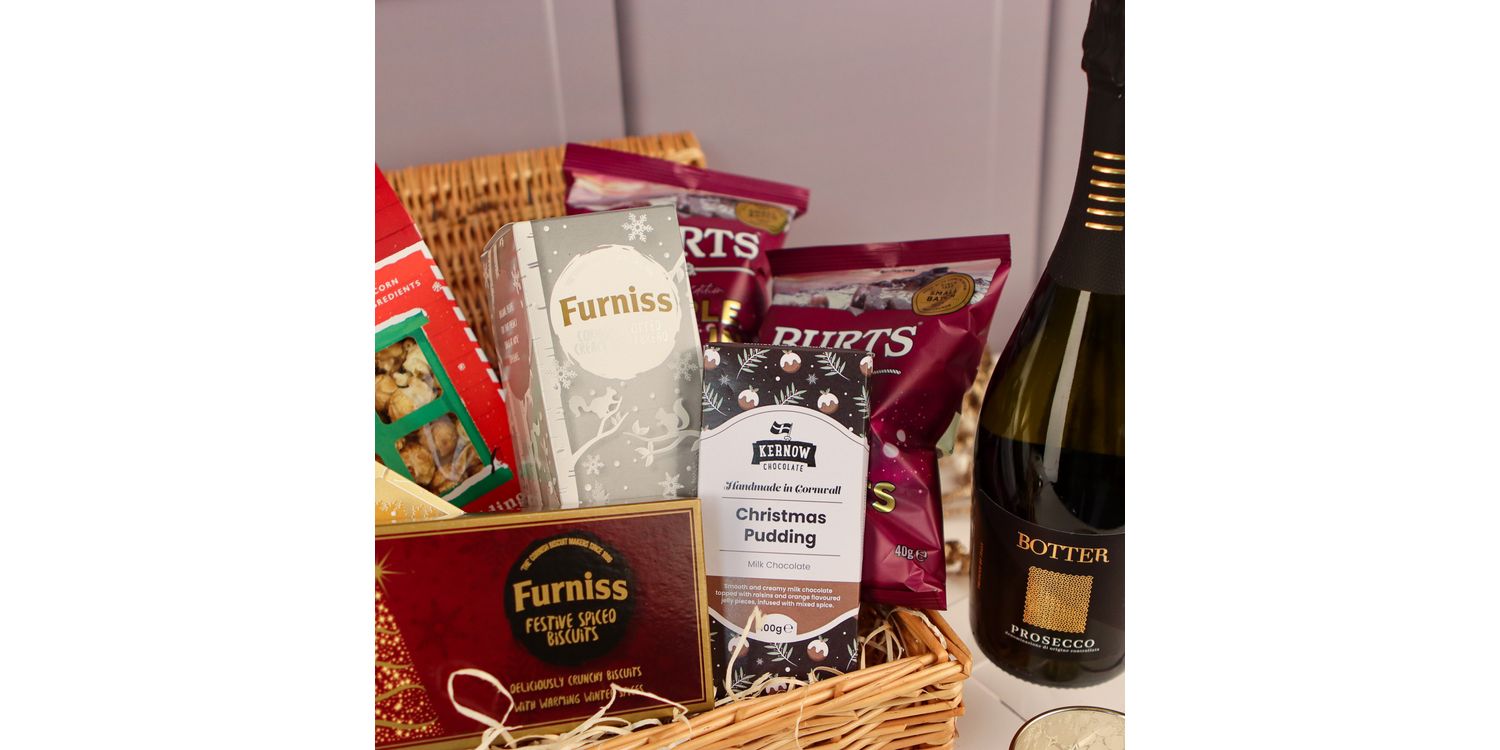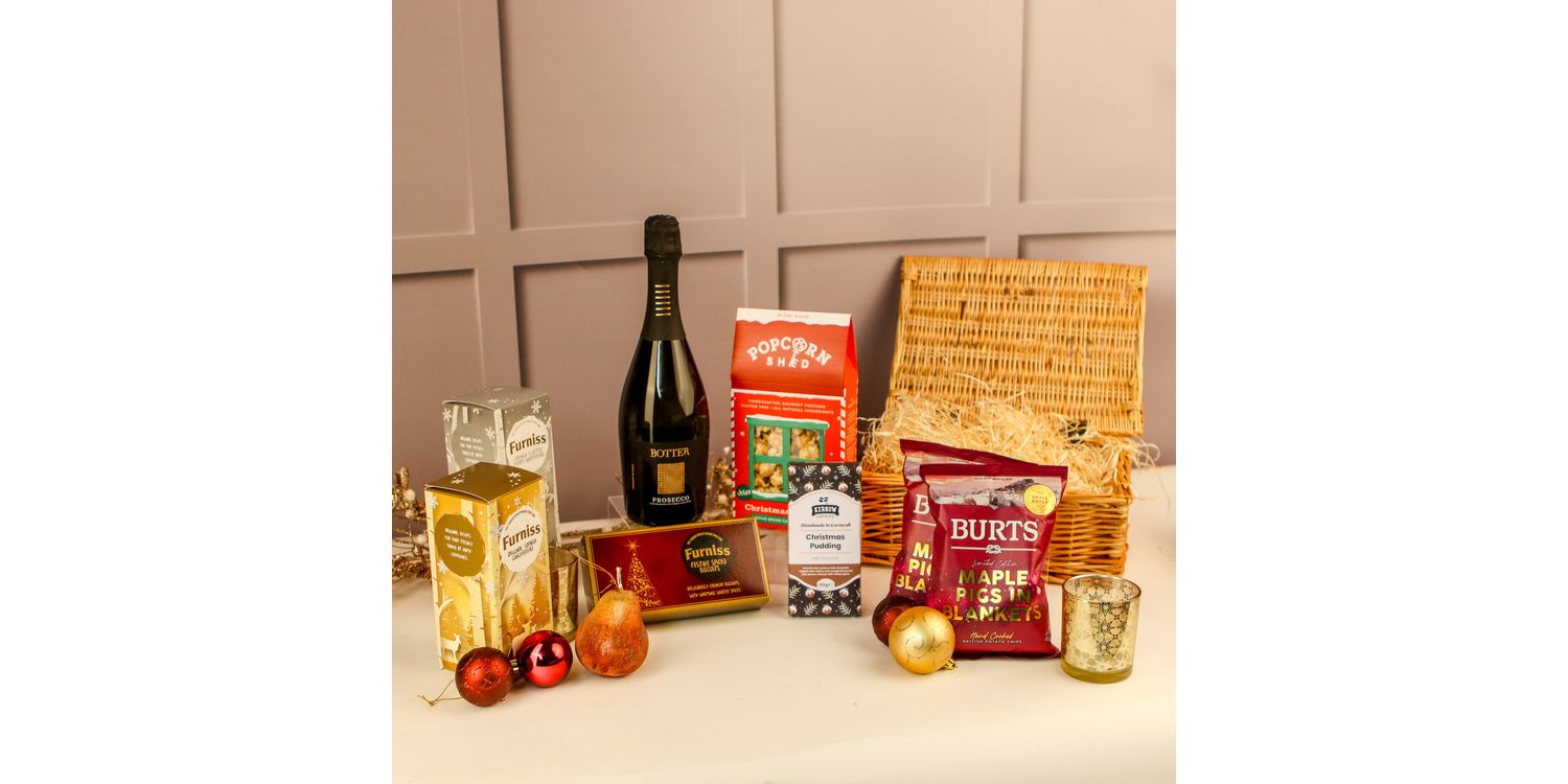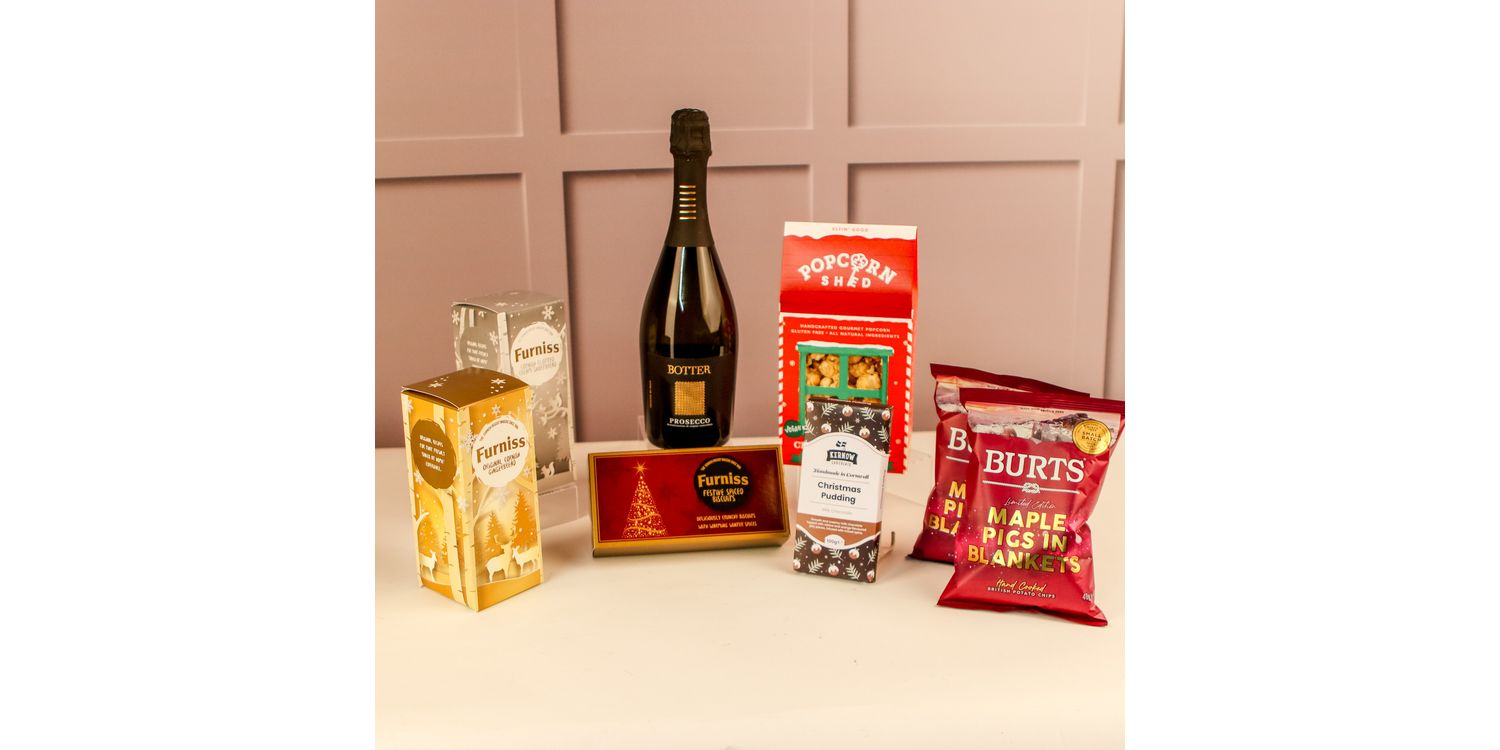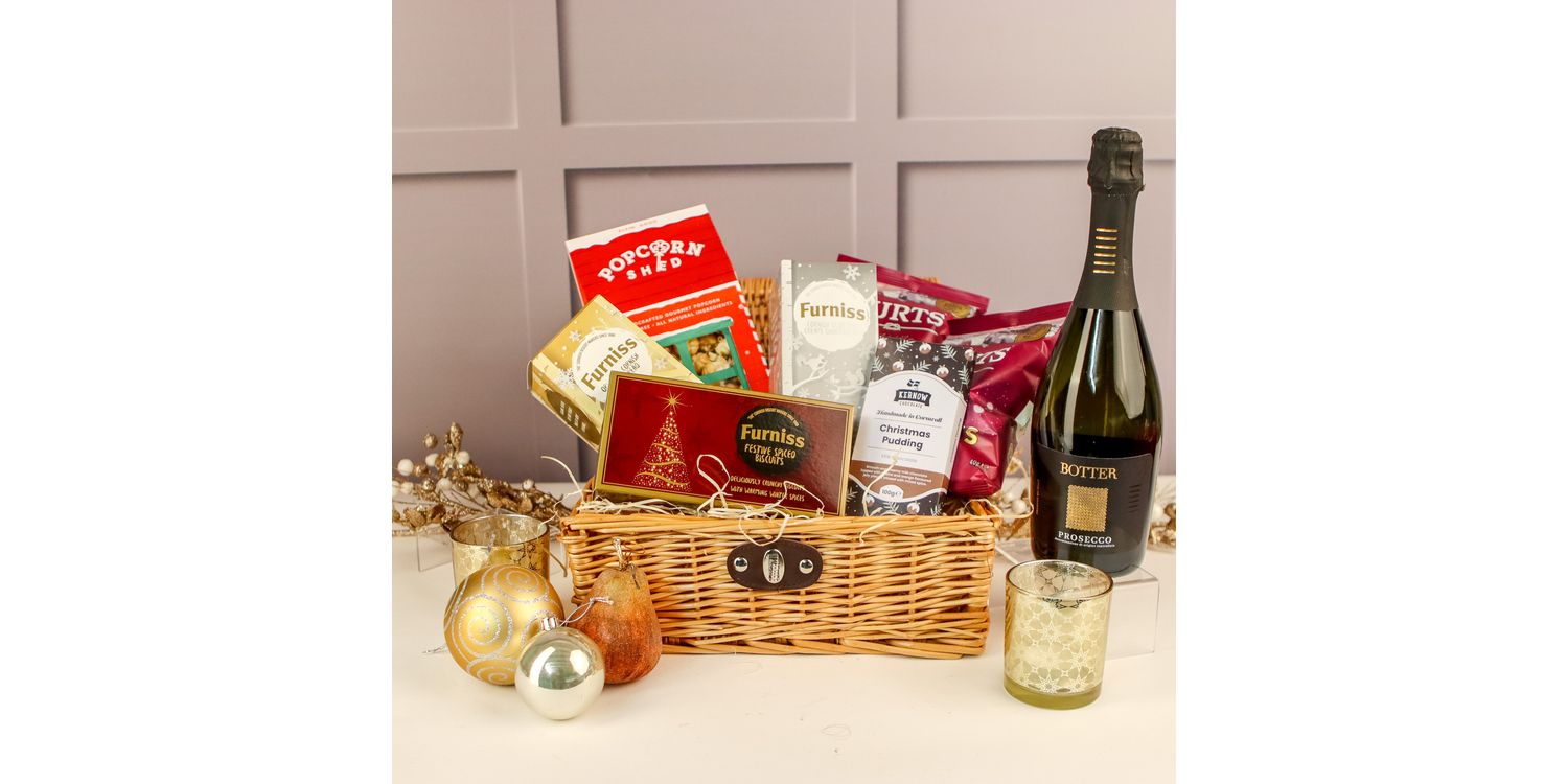 They'll be delighted when they open their hand-packed Christmas gift hamper full of festive treats, including a great selection of biscuits, tasty crisps, delicious chocolate and Christmas pudding flavoured popcorn plus a wonderful bottle of prosecco.