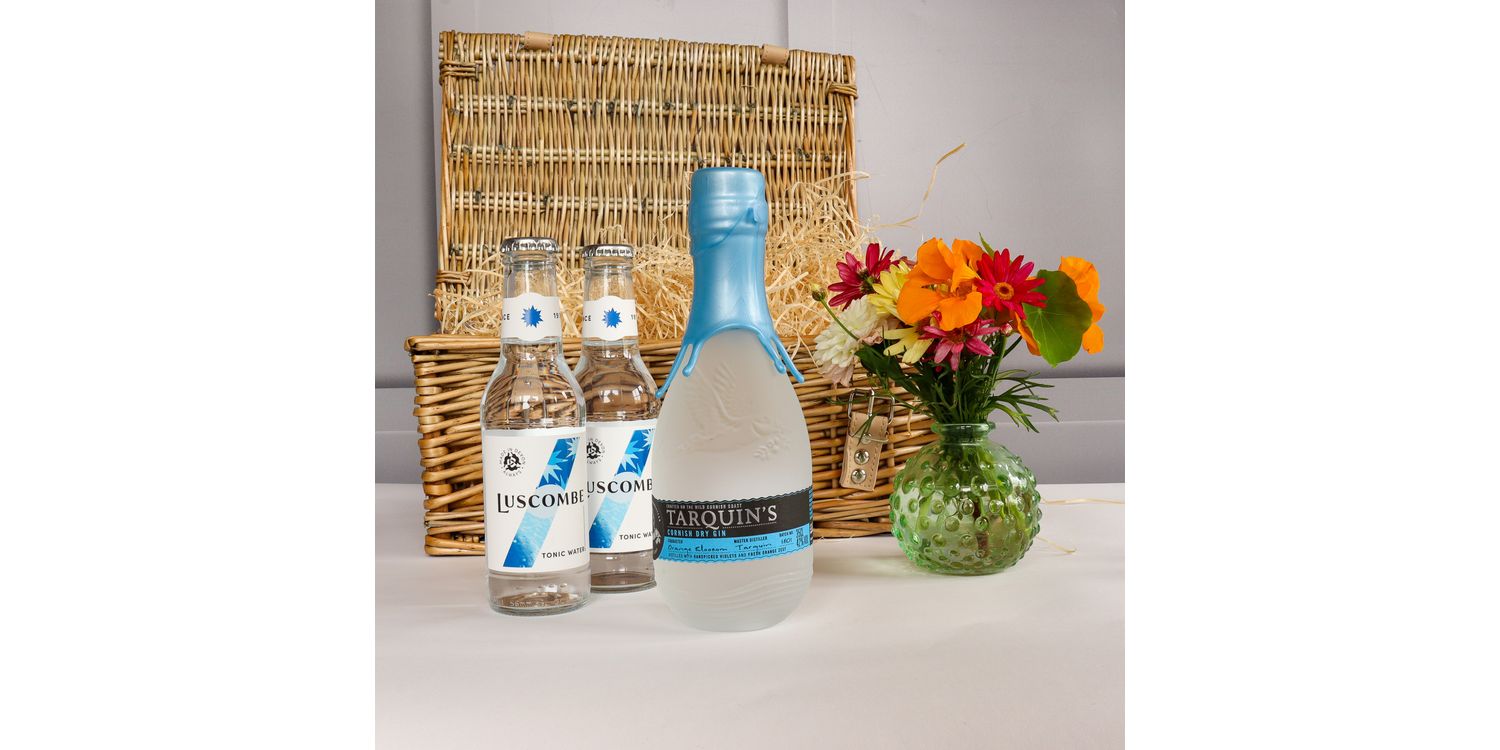 Discover the perfect gin and tonic experience with this premium gift hamper. Contains a 35cl bottle of award-winning Tarquin's Gin paired with two bottles of Luscombe Tonic Water, crafted with Dartmoor spring water and Indian quinine. This thoughtfully curated hamper makes an ideal gift for gin enthusiasts or a luxurious treat for yourself. Everything you need for exceptional gin and tonics, beautifully presented and ready to enjoy.